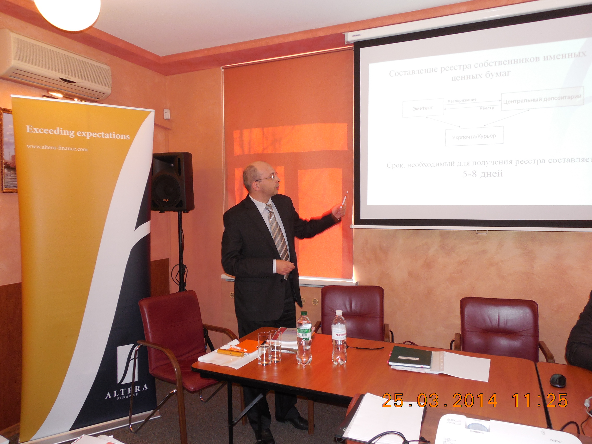У м. Донецьку пройшов семінар для емітентів цінних паперів26 березня 2014 р. Інвестиційна група «АЛЬТЕРА ФІНАНС» разом із компанією «Емкон» провели cемінар на тему: «Актуальні питання діяльності емітентів цінних паперів у 2014 році». На заході, що відбувся 25 березня 2014 року у м. Донецьку, були розглянуті останні зміни у чинному законодавстві, що впливають на діяльність емітентів цінних паперів у поточному році, особливо навесні - у період активного проведення загальних зборів акціонерів і розкриття річної інформації. Відкриваючи семінар, начальник Донбаського територіального управління Національної комісії з цінних паперів і фондового ринку Людмила Серафімова проаналізувала ситуацію, що склалася на фондовому ринку країни, і дала рекомендації учасникам семінару щодо їхньої професійної діяльності. На семінарі були розглянуті зміни, що відбулися у депозитарній системі України, і особливості її функціонування. Начальник депозитарного підрозділу ІГ «АЛЬТЕРА ФІНАНС» Сергій Філін у своєму виступі про взаємини емітентів із Центральним депозитарієм детально розповів про правила складання реєстру власників іменних цінних паперів, акцентував увагу слухачів на типових помилках при заповненні розпоряджень, серед яких - визначення дати реєстру, закінчення строку повноважень розпорядника рахунку, невідповідність реквізитів подписанта з карткою зразків підпису й інші. Спікер також розповів присутнім про методи запобігання цих помилок. Позитивно віднеслись учасники семінару до нововведення у законодавстві, що дозволяє емітентам звертатися за реєстром до депозитарної установи, що значно скорочує строки його одержання. Крім того, на семінарі був розглянутий порядок розкриття інформації на фондовому ринку, зміни в особливій, квартальній і річній інформації емітентів цінних паперів, вимоги до підготовки аудиторського висновку, основні принципи роботи системи електронної звітності НКЦПФР та інші питання.